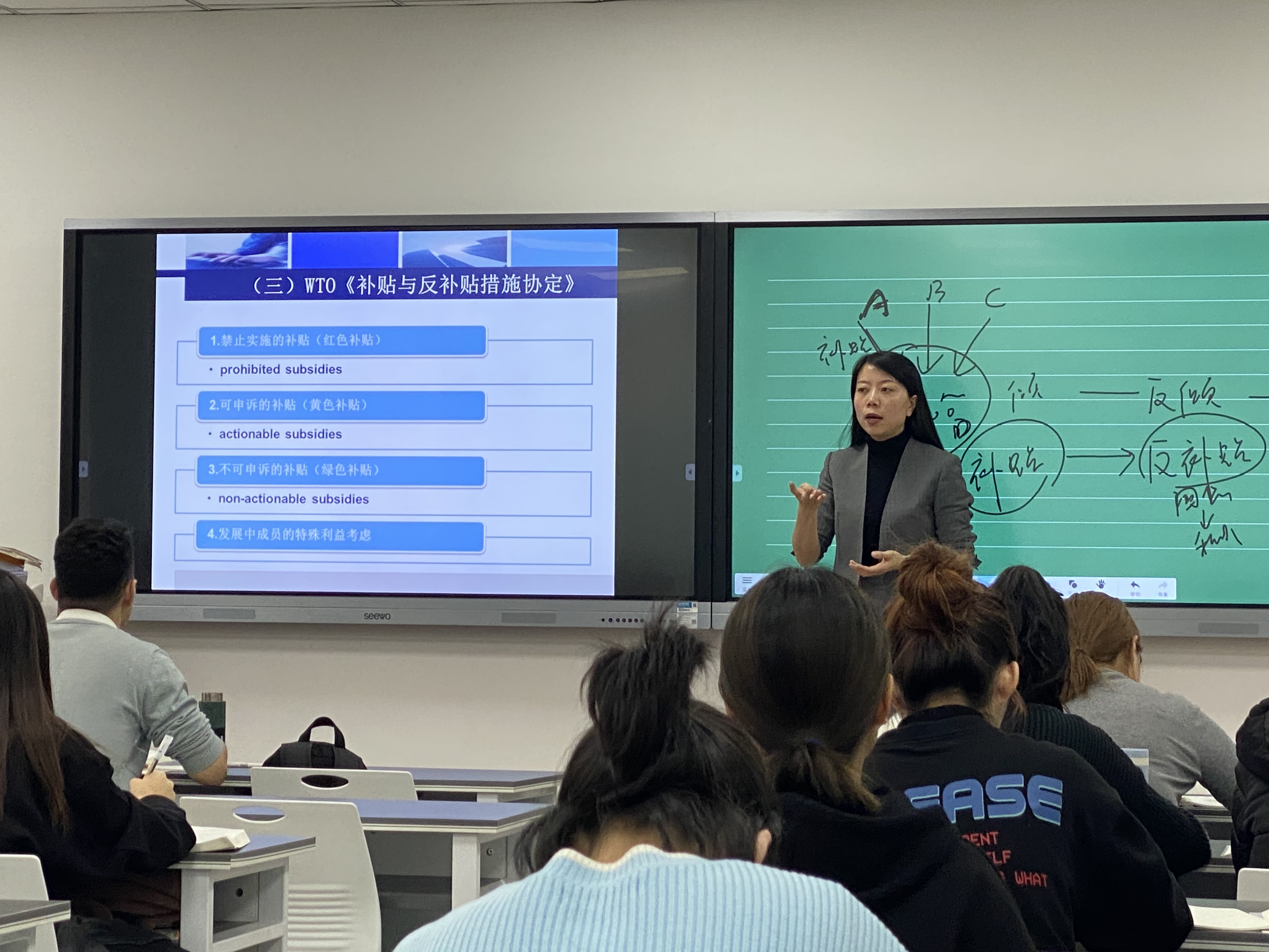 两位老师的教学自然流畅、富有感染力,备课充分、教学资料生动翔实。师怡老师主要讲授了补贴的构成及分类,反补贴措施的构成及其救济。授课逻辑严密,讲授流畅,并采用大量案例辅助教学,能够充分调动学生的课堂积极性并启发学生思考。李捷音老师主要讲授了知识产权的国际保护以及TRIPS协定的主要内容。李老师授课教学节奏把握良好,擅于将复杂晦涩的法律概念以简单明了的方式向学生讲授,增强了学生的理解及记忆,课题气氛活跃,学习效果良好。