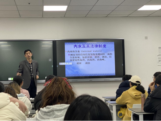 吕江教授和刘学文副教授主讲的内容分别是国家领土法和国际货物运输保险法律法。两名教师授课过程深入浅出、声情并茂,教学设计科学合理,课件制作精美,安排紧凑有序,教学环节把握得当,讲解环环相扣,与学生互动多样,课堂精彩纷呈,受到师生好评,达到了预期效果。