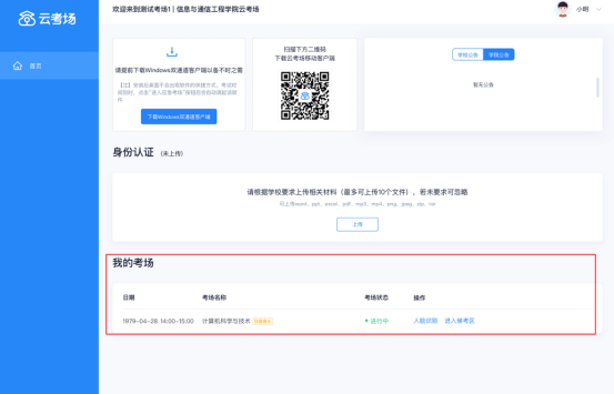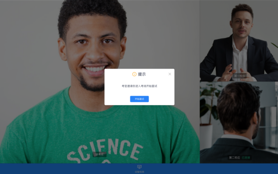 d. 系统对接公安部数据,若认证成功可进入候考区,若认证失败可点击“重试”。若一直认证失败也可进入候考区,但在考官界面会提示“人脸识别认证未通过”,考生须将身份证原件在面试中展示给考官,进行“人证对比”。考试过程中,考官可以查看人脸识别时的截图,确保面试考生是参加人脸识别考生本人,避免替考。