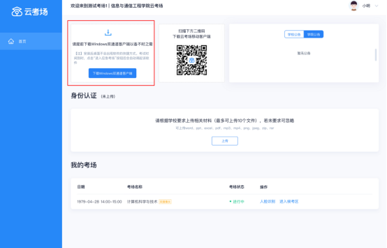e. 若当考试要求使用双摄像头进行面试时,考生需要打开云考场移动端扫描该页面提供的二维码加入第二摄像头。考生须将手机屏幕锁定设置成“永不”,避免考试期间因手机锁屏造成第二摄像头无法提供视频画面的情况