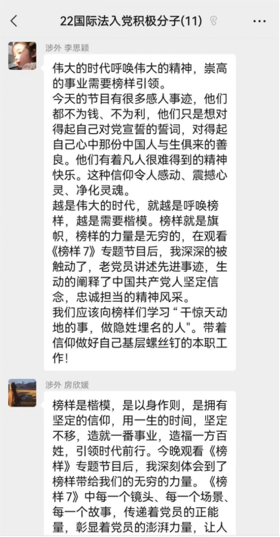 伟大时代呼唤伟大精神,崇高事业需要榜样引领。全体党员畅谈所思、所感、所悟,深入思考体悟榜样精神引领作用。大家纷纷表示,榜样的力量振奋人心,榜样的精神薪火相传,作为党员,要以先进典型为榜样,把信仰刻在心上,把担当扛在肩上,牢记初心使命,在全面建成社会主义现代化强国、全面推进中华民族伟大复兴的历史进程中奋勇争先、建功立业。