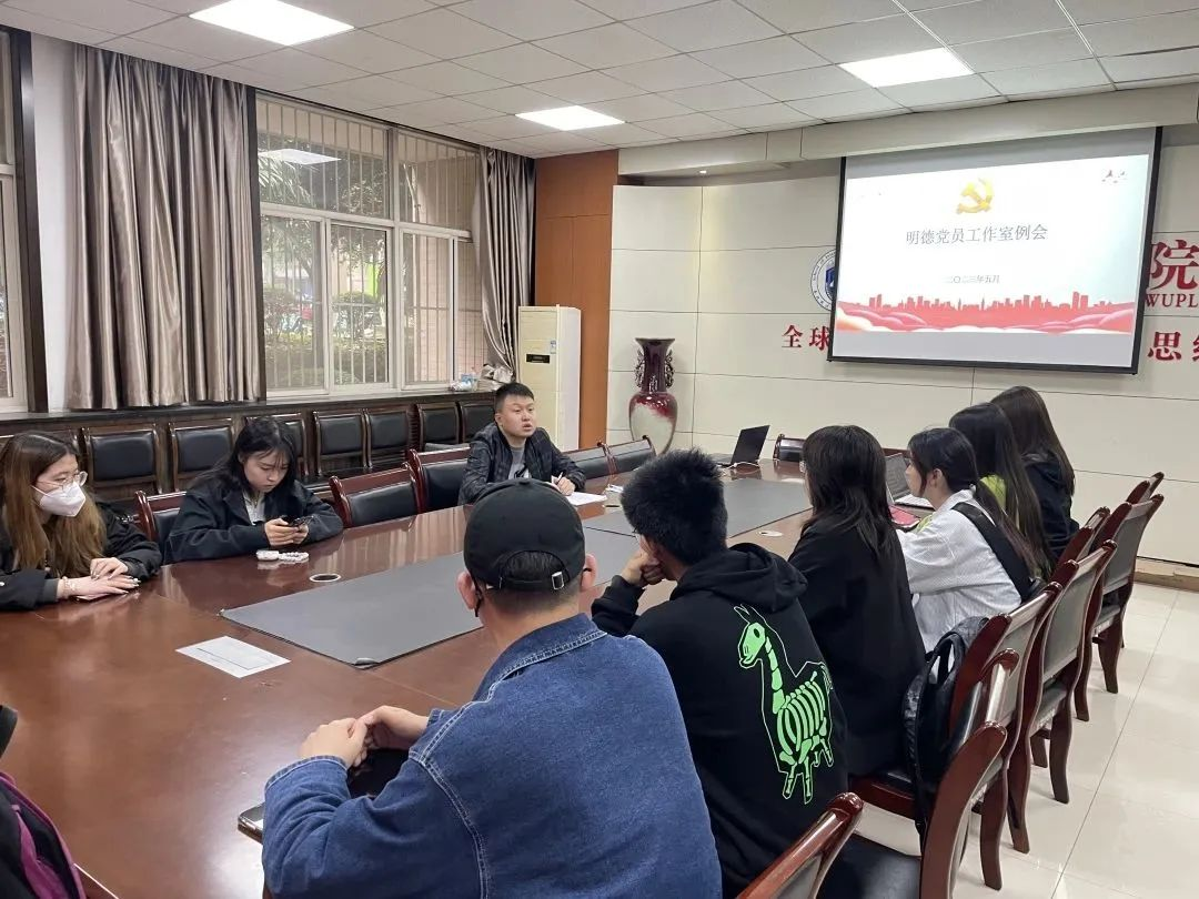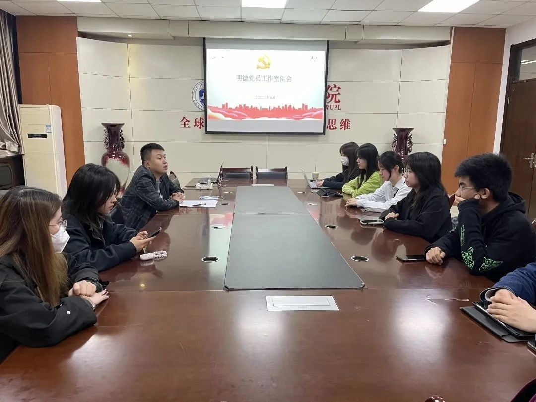 为深入开展学习贯彻习近平新时代中国特色社会主义思想主题教育,全面系统贯彻习近平法治思想,6月1日,英皇娱乐场 明德党员工作室召开本学期第三次工作例会,各部门负责人参加会议,英皇娱乐场 党委组织员韩潇主持会议。