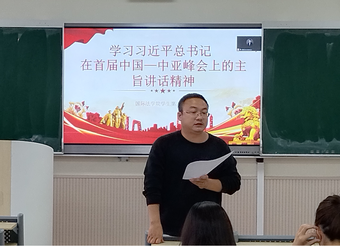 会上,苏芝双领学了习近平总书记在中国-中亚峰会上的主旨讲话精神,系统解读了“四点主张”、“四个坚持”和“八点建议”。他表示,全体党员要全面贯彻习近平外交思想、习近平法治思想,吃透基本精神、把握核心要义,不断增强自身法治意识、夯实法学理论功底,奋楫笃行、臻于至善,奋力推进新时代法学教育和法学理论研究,争做社会主义法治的忠实崇尚者、自觉遵守者、坚定捍卫者。