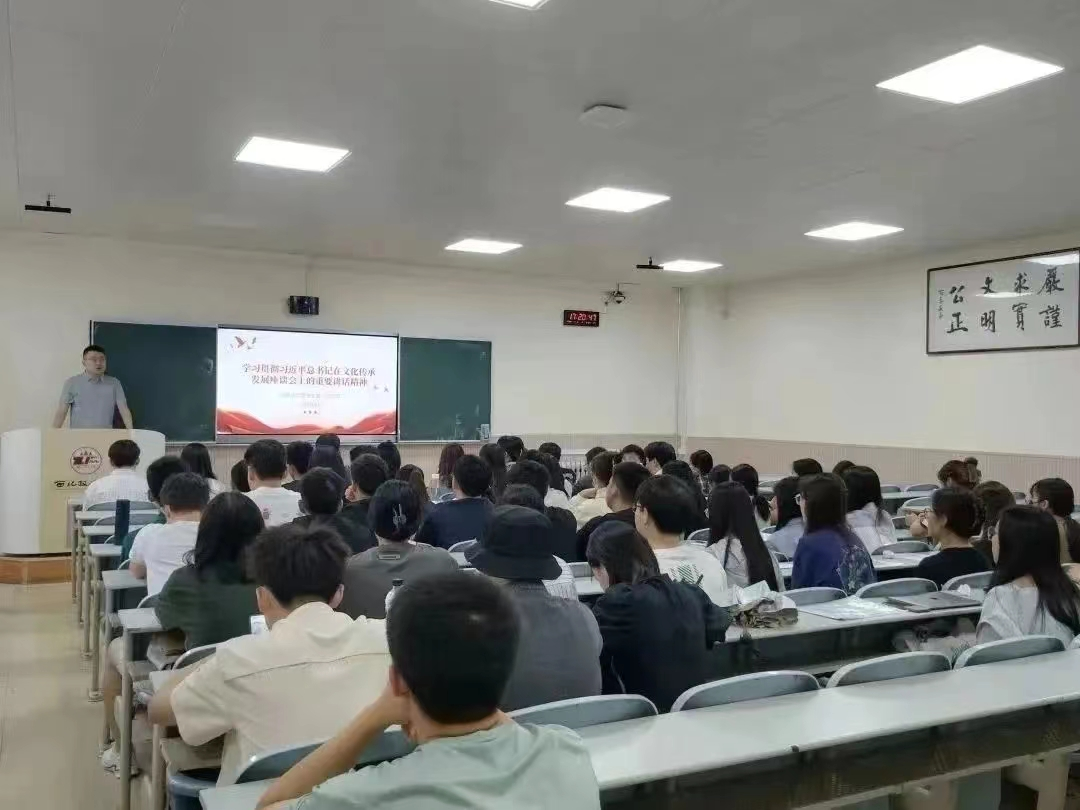 韩潇首先领学了习近平总书记在文化传承发展座谈会上的讲话内容。他表示,习近平总书记的重要讲话从党和国家事业发展全局战略高度,对中华文化传承发展的一系列重大理论和现实问题作了全面系统深入阐述,是建设中华民族现代文明的行动指南,具有极其重要的里程碑意义。要充分利用陕西丰富的历史文化资源,深入挖掘校史资源、加强校园文化培育,将文化育人贯穿立德树人全过程,开展多形式、分层次、全覆盖的学习,引导青年学生传承好中华文脉,从中华优秀传统文化中汲取为中国特色社会主义事业奋斗的力量。