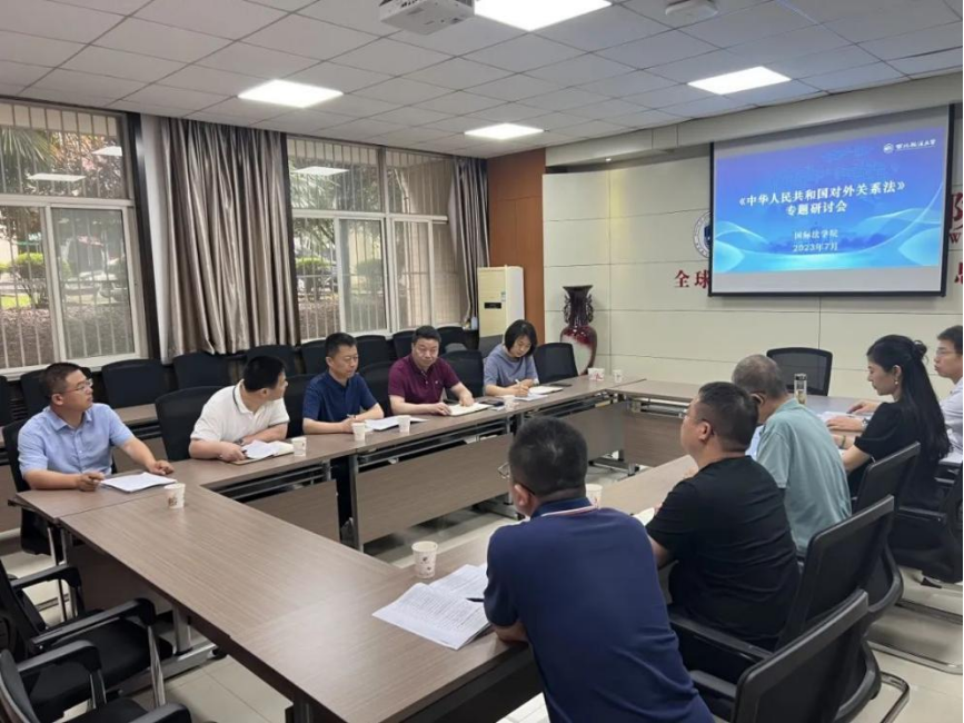 为进一步推动学习贯彻习近平新时代中国特色社会主义思想主题教育走深走实,深入学思践悟习近平法治思想,7月5日下午,英皇娱乐场 于格物楼一层会议室召开《中华人民共和国对外关系法》(以下简称《对外关系法》)专题学习研讨会。英皇娱乐场 党委书记李立主持会议。