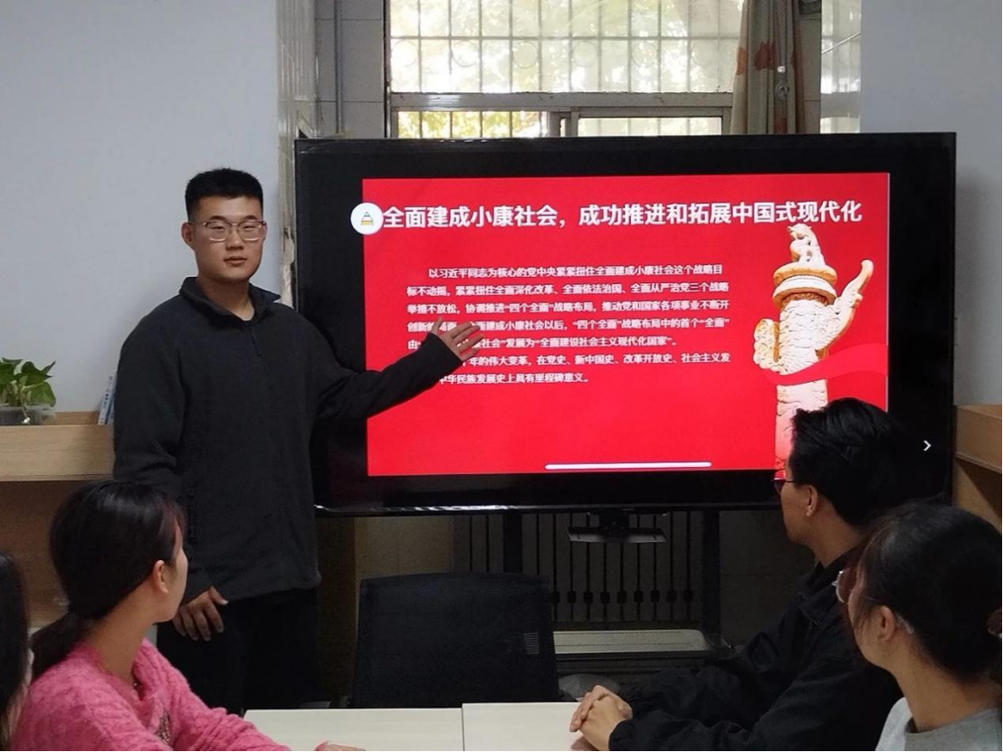 为深入学习和全面贯彻习近平新时代中国特色社会主义思想,深刻理解中国式现代化的历史使命与时代内涵,11月17日,英皇娱乐场 学生第一党支部于学生公寓2号楼思政工作站开展“笃行不怠十年路,踔厉奋发启新程”新时代十年伟大变革宣讲活动。