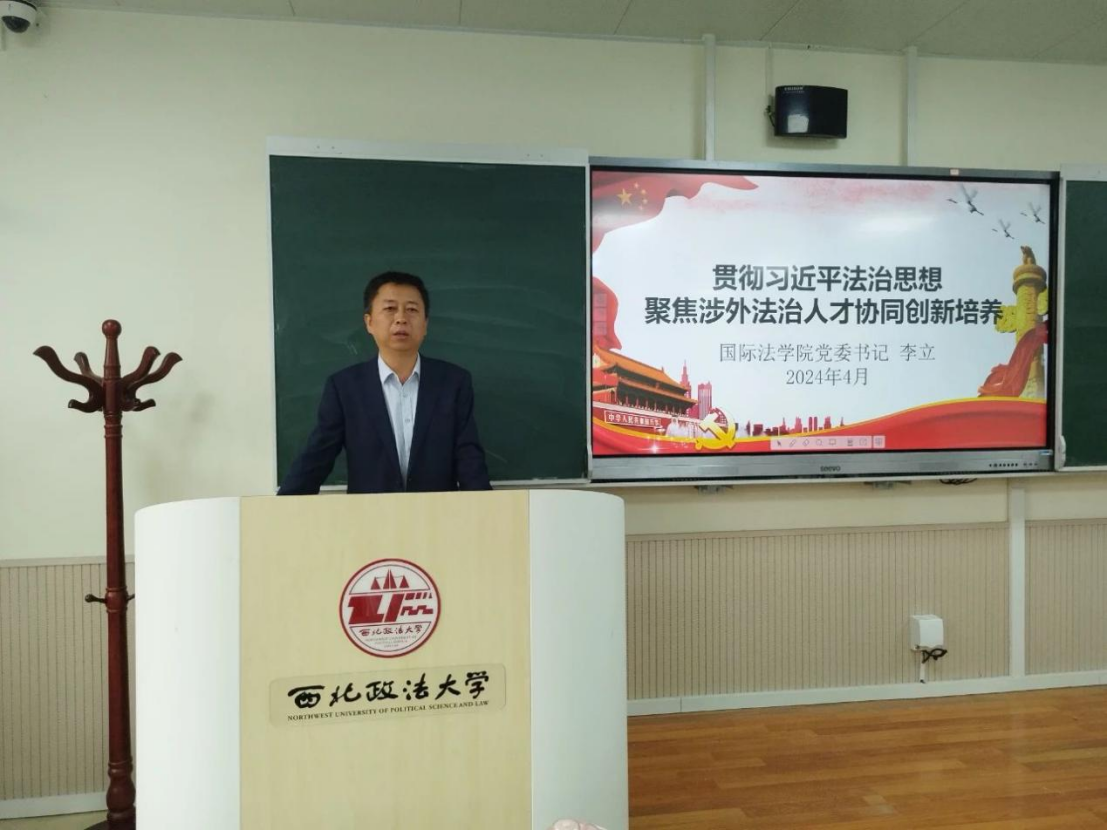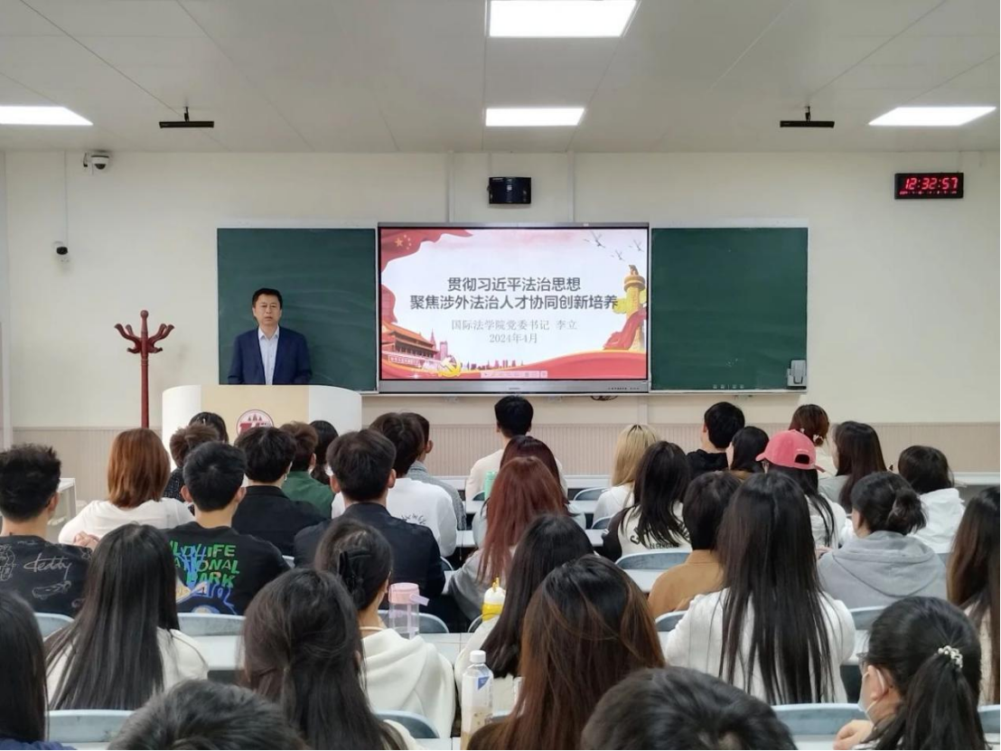 为深入学习贯彻习近平总书记在中共中央政治局第十次集体学习时的重要讲话精神,着力加强涉外法治人才培养,4月19日,英皇娱乐场 党委书记李立以《贯彻习近平法治思想 聚焦涉外法治人才协同创新培养》为题,于天平楼A201教室为英皇娱乐场 师生党员讲授专题党课。