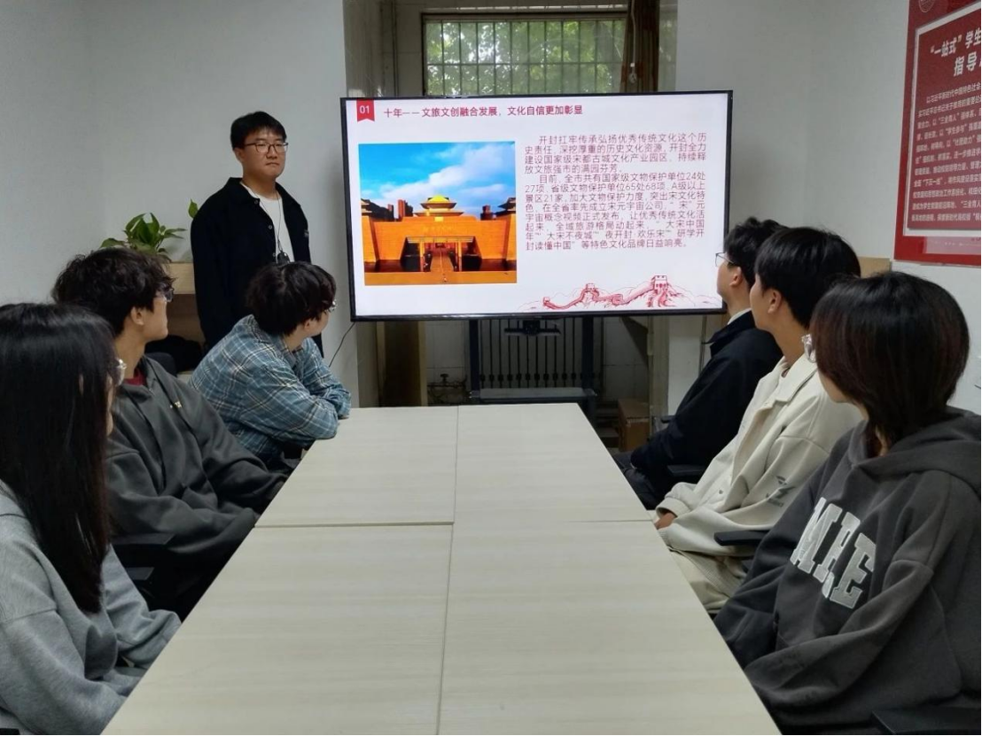 聚焦河南开封这十年各项事业的蓬勃发展,支部成员生动讲述了党的十八大以来开封推进文旅文创融合发展,彰显坚定文化自信的有益实践;持续增进民生福祉,显著提升生活品质的卓越效果;促进区域协调和谐发展,推动城乡面貌焕然一新的切实手段,全景展示开封这十年不懈努力、踔厉奋发谱写出的高质量发展新篇章。