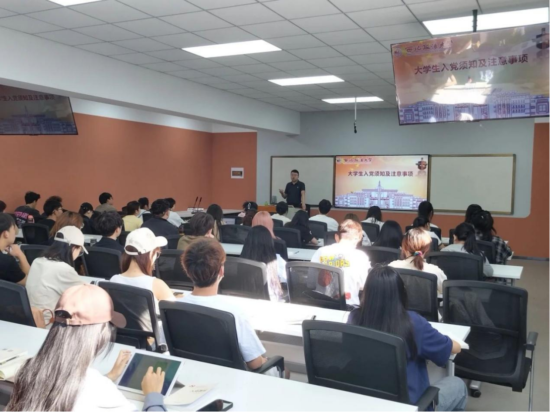 韩潇围绕党员的基本条件、入党积极分子的教育和考察、入党流程及注意事项等方面展开了具体分析,通过全面解读党的基本理论知识,引导入党积极分子进一步端正入党动机,强化纪律意识,深化对党的性质宗旨的认识,切实提高理论水平和政治素养,明确自身学习方向和努力方向。