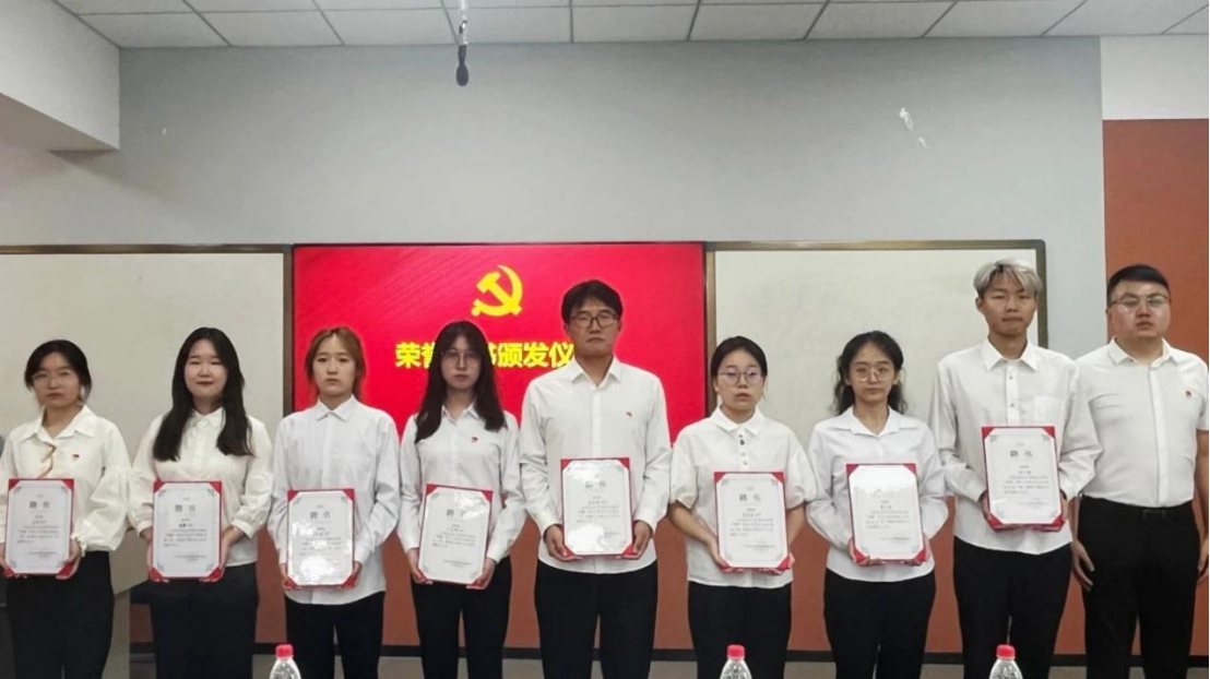 会议在庄严的国歌声中拉开序幕。李立宣读了《中共英皇娱乐场 委员会关于2024年度“七一”表彰的决定》,并为受到表彰的8名优秀共产党员、9名优秀入党积极分子、7名优秀志愿者颁发证书。随后,韩潇为“明德”党员工作室各部门新任负责人颁发聘书,贾少慧向各部门新干事颁发聘书。