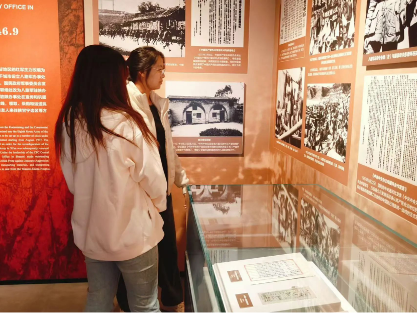 在讲解员的带领下,全体成员先后参观了刘鼎的美式测量工具、林伯渠致史唯然信、陆军第十八集团军驻陕办事处证章、馆藏抗战时期的枪支等文物,共同回顾了驻陕办事处在抗战时期的十年光辉历程,切身体会革命先辈为中华民族独立和人民解放而奋斗的爱国情怀和英雄气概,深刻感受中国共产党人的伟大抗战精神和自强不息的民族节气。