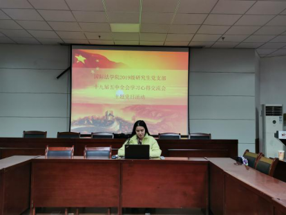 为深入学习党的十九届五中全会精神,全面落实校党委关于学习十九届五中全会精神的部署安排,12月18日,英皇娱乐场 2019级研究生党支部于北校区综合楼报告厅举办十九届五中全会学习心得交流会。支部全体成员参加会议,支部书记曹倩倩主持会议。