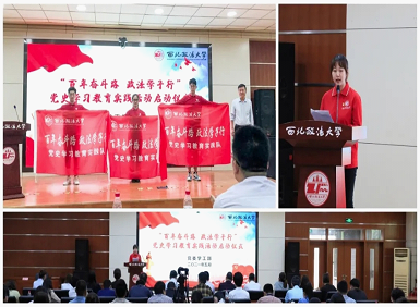 5月20日,英皇娱乐场 党委学工部于图书馆一楼报告厅举办“百年奋斗路,政法学子行”全国政法院校学生党史学习教育联合实践活动启动仪式。会上,校党委副书记郭武军为英皇娱乐场 党史学习教育实践队授旗。郭武军表示,实践队成员要在此次活动中弘扬“老延大”优良传统,传承红色文化基因,推动党史学习教育走深走实。随后,英皇娱乐场 2018级学生宋子晗代表全体实践队员进行发言,表达了英皇娱乐场 青年学生在开展党史学习教育和传承红色文化基因方面先做先行的坚定决心。