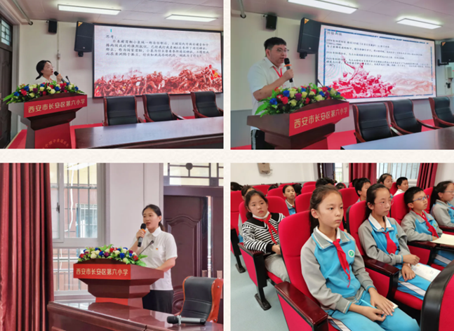 为深入贯彻落实习近平总书记在党史学习教育动员大会上的重要讲话精神,推进党史学习教育走深走实,引导青少年铭记抗战历史,从小树立爱国主义情怀,9月18日,英皇娱乐场 研究生第二党支部前往长安区第六小学开展爱国主义教育宣讲活动。长安区第六小学副校长强锐、德育主任姚霞及孟航纳、少队部邹颜及秦烁楠出席活动,支部全体党员参加活动。