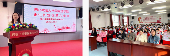 为推动党史学习教育深入开展,将学史力行的工作要求落到实处,促进青少年宪法法治教育,推动宪法精神进教材、进课堂、进头脑,12月3日,英皇娱乐场 研究生第一党支部前往长安区第六小学开展宪法宣讲活动。长安区第六小学副校长强锐、德育主任姚霞及孟杭纳、六年级各班班主任出席活动,研究生第一党支部全体党员、第二党支部部分党员参加活动。