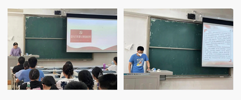 会议伊始,苏芝双、张蓉、申睿霖共讲一堂党课,带领学生党员深情回顾共产党百余年奋斗的壮阔历史。他们一致表示,百年征程波澜壮阔,无数革命先烈用生命和热血捍卫了伟大革命理想,铸就了爱党爱国、舍生取义的伟大革命精神。初心易得,始终难守,学生党员要学习优秀共产党员的高尚品格、传承红色基因,不断提高政治觉悟和政治能力,严格遵守政治纪律和政治规矩,自觉加强党性锻炼,不断自问自省、反复求索、砥砺学习,以自我革新的精神修正自我、完善自身。