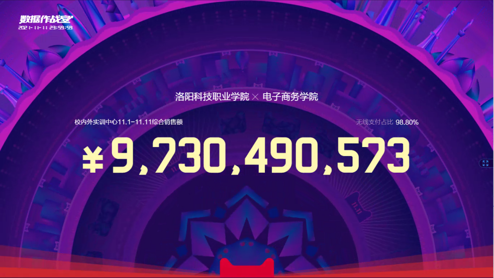 2021年11月11日零点刚过,高清大屏上交易额不断飞涨,电子商务英皇娱乐场 数百台电脑屏幕被瞬间潮水般涌入的订单消息所占领。教室内灯火通明,弥漫着一股紧张气氛;一双双眼睛紧盯着屏幕,头上戴着“必胜”字样的红色丝带,双手飞快地敲击着键盘。与往年不同的是,此次“双十一”增加了直播带货等方式,让学生可以在直播间实地体验、学习。这是一个注定不平静的夜晚,大屏上的支付数字也在不停地跳动,一分钟,销售额破两亿。