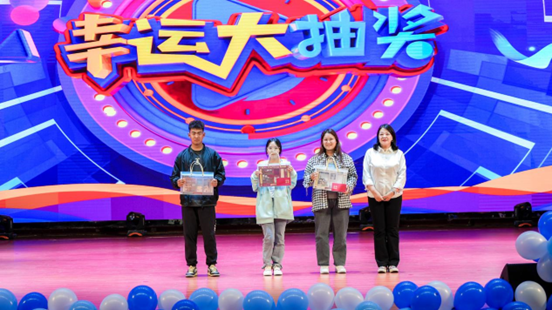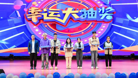 办公室主任张茜茜组织新生幸运抽奖环节,现场气氛热烈,晚会气氛热闹非凡,确保本场晚会“有彩头”。