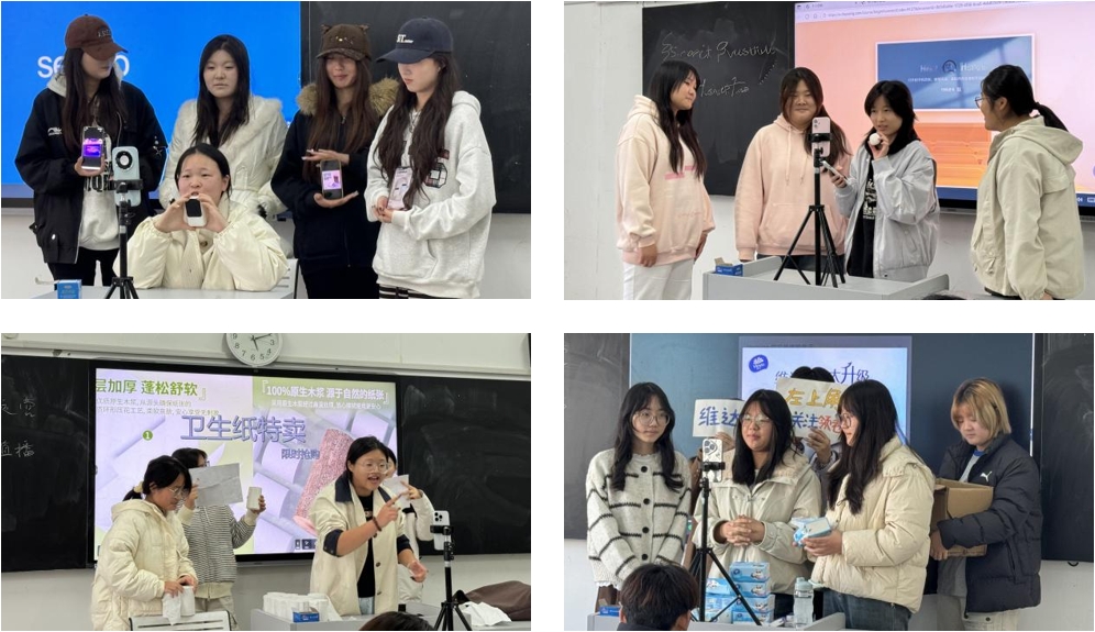在改革实践中,教研组摒弃“重讲授、轻参与”的传统模式,将专业课程与真实跨境场景深度融合。《跨境电商运营》课上,“课本讲运营”的旧貌被“模拟真实战”取代:教师紧扣SC改革“以学习效果为中心”核心,设定“直播间搭建”任务,将学生划分为运营、选品、客服专项小组,完成从选品上架到话术优化的全流程实操。小组展示时,2024级学生顾梦雨带领团队呈现的“日化店铺运营方案”因贴合市场需求获好评,现场赢得当堂最佳人气奖。“从查数据到定方案全靠自主探索,比被动听课记得牢多了!”李悦的话道出了不少学生的心声。