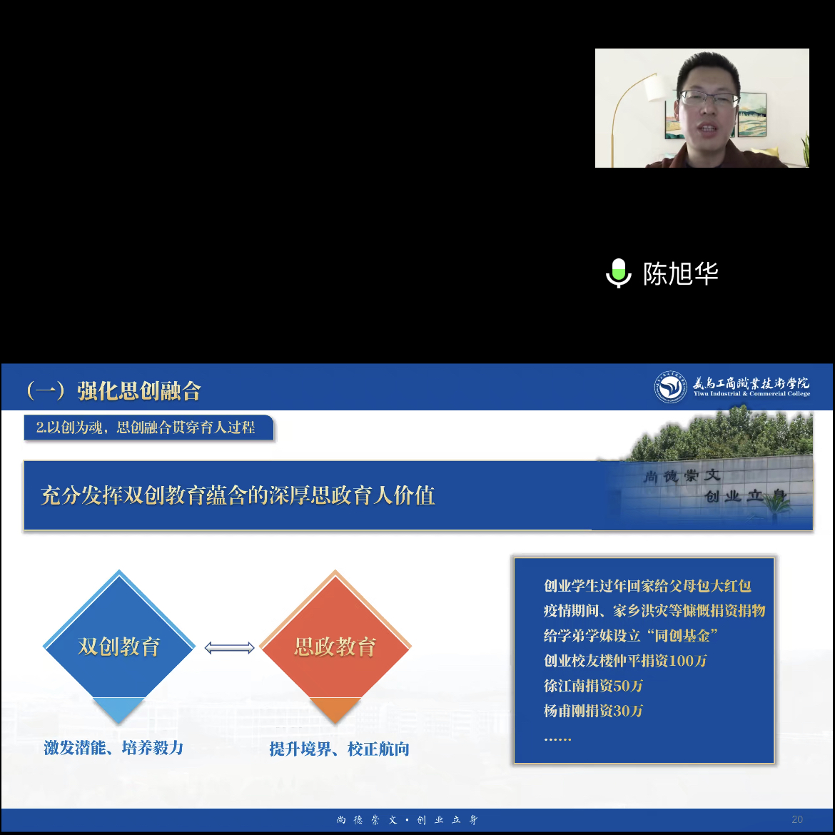 1月29日下午,洛阳科技职业英皇娱乐场 电子商务英皇娱乐场 邀请义乌工商职业技术英皇娱乐场 创业英皇娱乐场 (创业园)、电子商务英皇娱乐场 院长陈旭华教授为全体教职工带来了一场以“创新创业教育体系建设”为主题的寒假培训活动。此次培训会旨在提升教师们在产教融合、精品课、创新团队等方面的教学水平和实践能力。