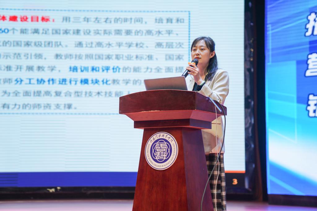张茜茜老师则从创新团队方面进行了分享,构建团队建设五大任务:团队教师能力建设、构建校企结构团队开展多样化培训、协作共同体建设、完善校企校际协同工作机制及课程体系建设。融合、创新、通达、见新,以融合为平台,以创新为抓手,以通达为路径,以见新为目标,从而构建青年教师教学创新团队。