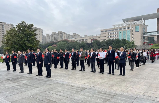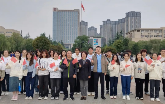 党委书记李立,党委副书记吴晓娟,党委组织员、2022级辅导员韩潇,团总支书记、2023级辅导员苏芝双以及全体在校师生共同参与,祝愿伟大的祖国生日快乐。