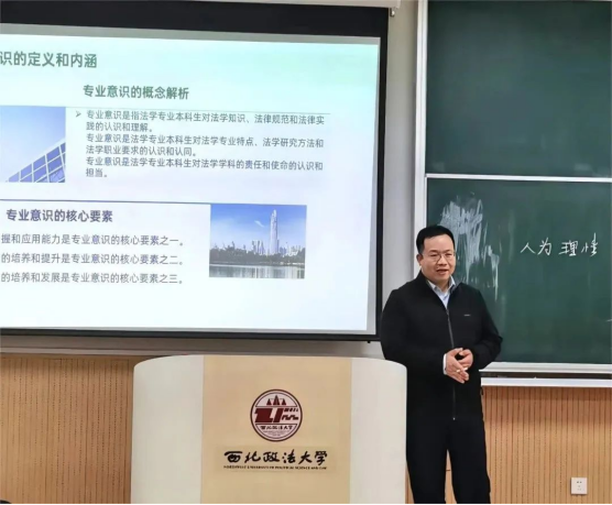 刘学文老师从专业意识的重要性、培养方法、评价与反思、实践案例分析、培养策略与建议五个方面向同学们详细介绍了法学的专业概况、发展前景以及学习方法,他提醒在场新生进行专业学习时,要注重理论与实践相结合,积极参与实践活动与学术研究,专注于自我能力提升,努力成为复合型的涉外法治人才。
