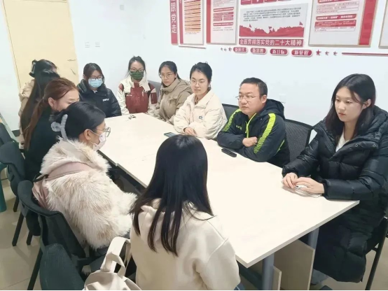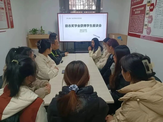 在2号学生公寓思政工作站召开了国家励志奖学金获奖学生座谈会,2023级辅导员苏芝双主持会议,国家励志奖学金获奖学生参加坐谈会。