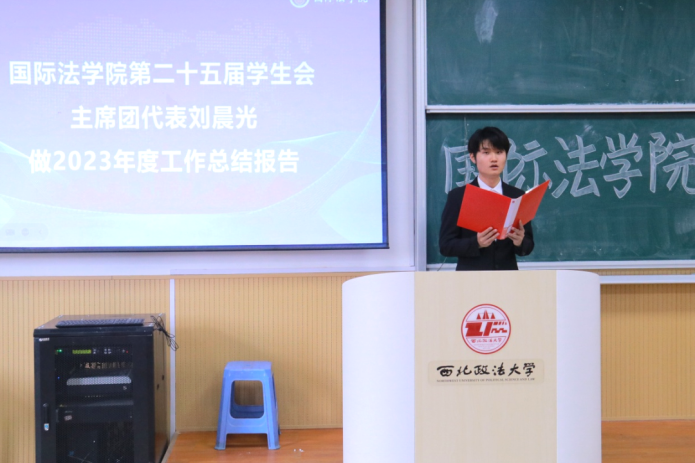 吴淏代第二十五届学生会主席团代表刘晨光做2023年度工作总结报告,阐述了学生会干部思想及教育工作建设、队伍建设等内容,勉励大家秉持和发扬优良传统和工作作风,切实为同学们办实事、办好事、办成事,树立起关心同学、清新阳光的组织形象。