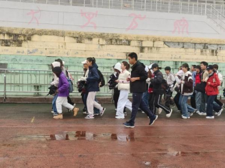 秋雨淅淅沥沥,却未能阻挡六班同学们晨练跑步的热情。他们在雨中奔跑,身影与雨丝交织,每一步溅起的水花,都像是青春活力的绽放。雨水洗涤了操场,也见证了六班同学百折不挠、积极向上的精神风貌。