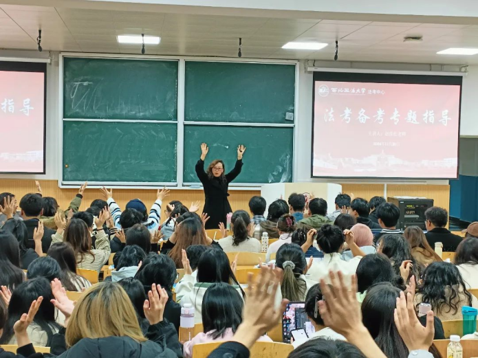 赵彦红以法律职业的发展方向为切入点,深入分析了当前的就业形式,深刻阐释了法考对于同学们职业生涯的重要性,让同学们对法考有了更为清晰、全面的认识。她与同学们积极互动,激励大家要以饱满的热情和坚定的决心去迎接备考路上的挑战。随后,她通过深入解读国家相关法考政策,向同学们详细介绍了法考流程、考试内容、及答题技巧,为同学们指明了复习备考的方向,帮助大家在未来的备考道路上精准发力,制定科学的复习计划,提高备考效率。