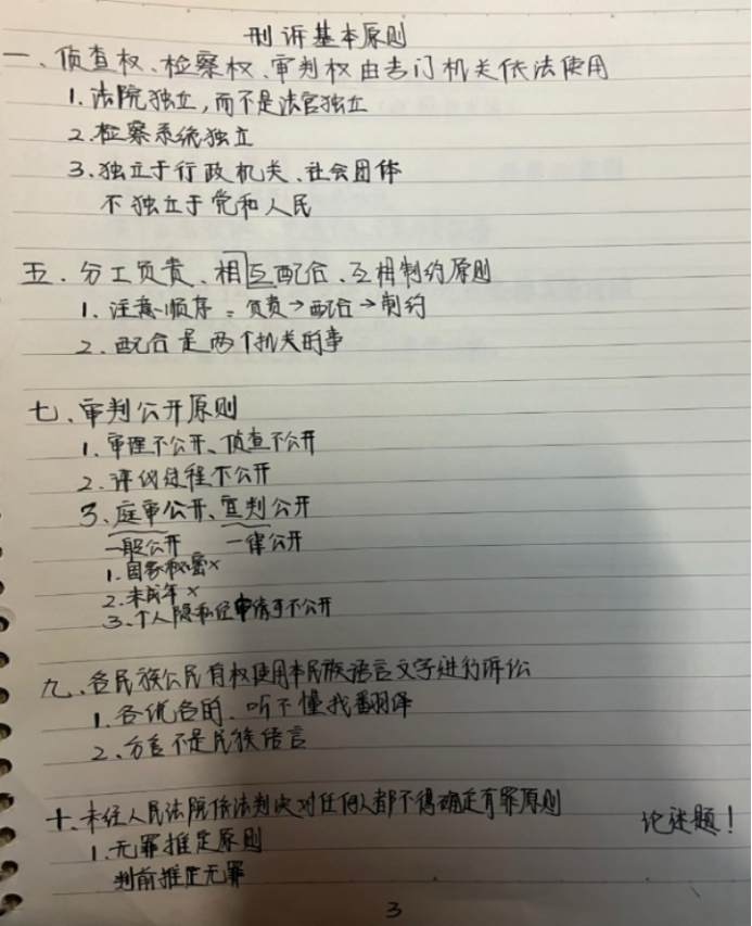 在平常的学习中,要注意好重点笔记的标识;专业课较为晦涩难懂的知识只求理解即可,不需当时就死记硬背,期末突击的时候曾被理解的内容会更加好复习、背起来一遍就过去了,但是不要把理解的成本都压到期末。笔记自己能看懂即可,不必强求格式和字体美观程度。期末最后要重视框架的梳理,可以搜一些马工程思维导图来顺框架。