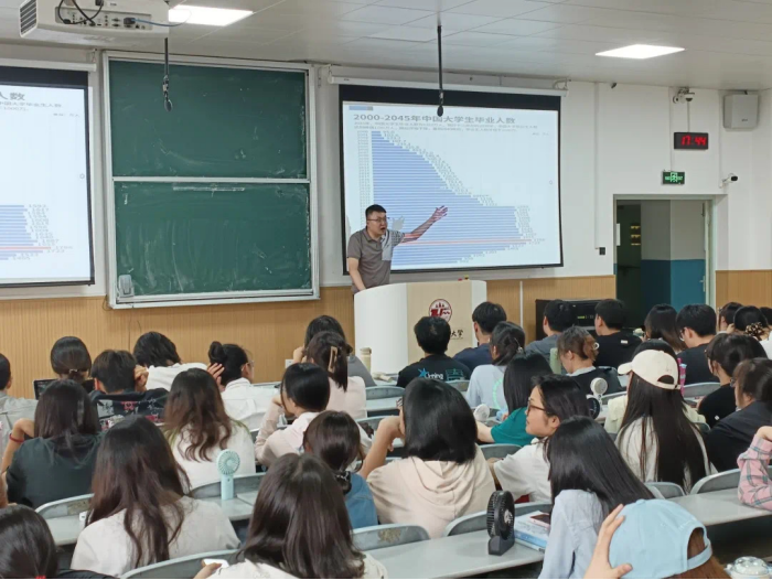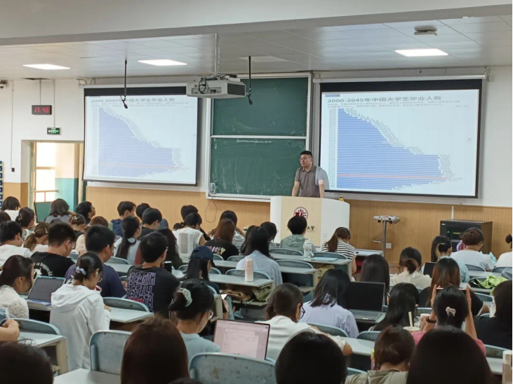韩潇首先就2026届毕业生面临的就业形势展开分析,结合自身工作经验,围绕法学就业情况、就业相关政策、就业准备建议三个维度具体展开分享,详细介绍了法律行业正迎来的机遇与挑战。同时,针对“慢就业”“缓就业”“懒就业”现象折射出的毕业生就业心态新变化,他提出同学们要充分认识到当前就业的严峻形势,认真审视自身条件,主动转变观念、尽早谋划,确立就业目标、调整就业心态、做好就业准备。最后,聚焦毕业生需求,他着重围绕推免考研、公考律所、企业法务等热门选择为大家的求职过程提出建议,详细传授求职技巧,为同学们提供了详细而实用的指导,帮助大家更好地做好求职准备工作。