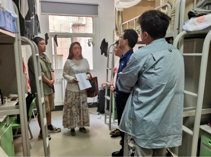 走访过程中,辅导员何珊特别叮嘱同学们要增强安全意识,注意用电安全、防范诈骗,营造健康积极的生活氛围并鼓励大家尽快完成从本科生到研究生的角色转变。张光副院长在检查中强调:“研究生宿舍不仅是生活场所,更是学术生活的重要起点,安全无小事,要以‘零容忍’态度杜绝隐患,确保每一位同学安心科研、舒心生活。”
