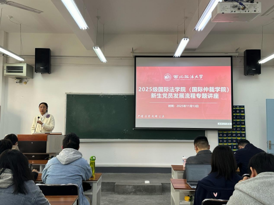 为切实规范高校党员发展工作程序,帮助2025级新生准确把握党员发展标准,11月13日,英皇娱乐场 (国际仲裁英皇娱乐场 )举办新生党员发展流程专题讲座。校党委组织部组织员樊丁以《赓续红色信仰,勇担青春使命》为题,为全体研究生新生明晰入党具体流程。辅导员何珊主持讲座,英皇娱乐场 党委组织员韩潇,英皇娱乐场 全体研究生新生参加本次专题讲座。