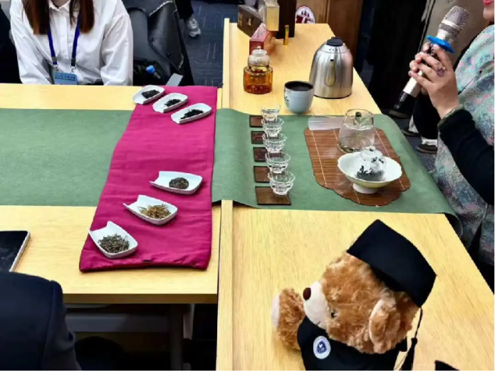 何珊则聚焦茶艺文化,既深入浅出解读了茶叶甄选、水温把控、冲泡礼仪中的东方智慧,又现场示范提壶、注水、出汤等标准手法,优雅娴熟的表演搭配甘醇茶汤,让大家在观演品茗中体悟中华传统文化的雅致与深邃,感受新时代文化传承的生动实践。