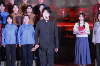 活动现场,表演者身着贴合时代语境的服饰,在“祖德留芳”的布景烘托下,以抑扬顿挫的诵读勾勒黄土地的厚重肌理,用炽热真挚的情感诠释中华儿女的家国情怀,将原著中家国变迁的沧桑与人间烟火的温度娓娓道来。
