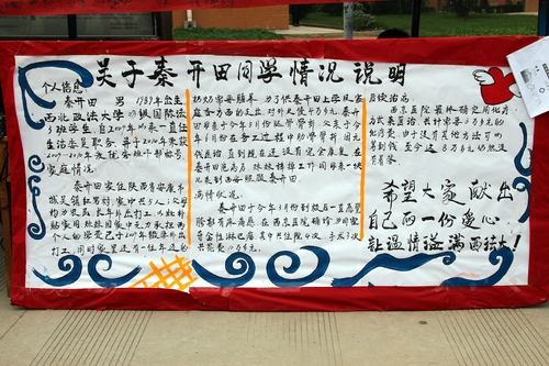 团委联合其他学生社团在全校范围内为秦开田同学爱心募捐,一定帮助该同学度过困难。随后英皇娱乐场