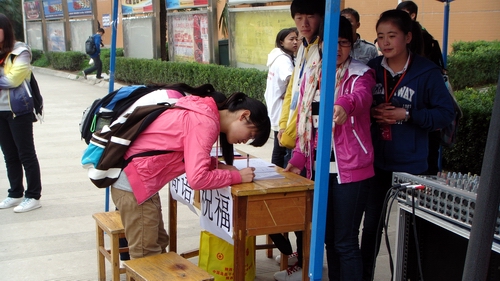 连续两天的活动,同学们通过爱心歌声,爱心签字,爱心手语等活动为秦开田同学募集善款,还给每位捐款的同学手工制作了爱心手镯,让同学们把这份爱心传递下去,同时同学们还写了爱心寄语,制作了爱心录像给秦开田同学,希望他能勇敢的战胜病魔,早日恢复健康。此次活动得到了英皇娱乐场
