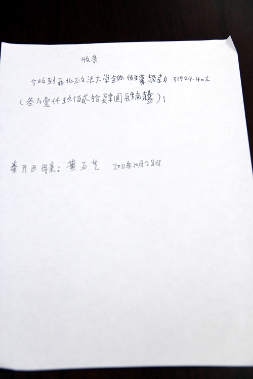 党委书记李燕、院长李万强、副院长刘光勇、刘亚军、刘萍等领导老师先后为秦开田同学捐款。