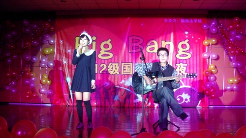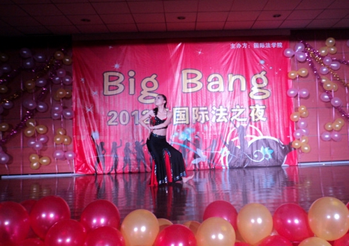 晚7点,伴随着晚会倒计时,晚会正式开始。随着现场灯光的明暗变换,精心编排的开场舞蹈《The boys》为晚会带来一个现代热情的开端。伴随着大家的掌声,四位主持人分别入场并致开场词。接着,由史家豪等两位同学表演的相声《大学那些事》使得大家捧腹大笑。 2011级同学为我们带来的安塞腰鼓,一只只腰鼓更是打响了国际法人的热情。动听的歌曲串烧《旅行的意义》、《传奇》、《I feel good》,将节目引入第二次高潮,话剧《爱情公寓》夸张精彩的表演和笑料不断的对白引得全场笑声阵阵,掌声不断。激情四射的舞蹈串烧《popping》和《街舞少年》让我们热血沸腾,舞蹈《吉祥谣—扎西措姆》让我们感受了不一样的民族特色。晚会的中间环节是书信祝福和微博互动,一封封书信传达的都是同学们的美好祝愿。同时,微博互动也精彩不断,很多兄弟院校和同学表示了对此次晚会的祝贺和称赞。紧接着,由贾雪娇,孙伟玲同学搞笑夸张的相声,也让我们明白了生活是五味杂陈的,幸福其实很简单。由大二学生带来的舞蹈《关中夯歌》演员们强劲有力的舞姿使整场晚会的气氛达到了高潮。话剧《I have a dream 》引人深思。歌舞串烧《夜夜夜夜》,《至少还有你》《赞哈》风格迥异,惊喜不断,慷慨激昂的朗诵《中华少年》,更是燃起了我们的爱国热情。古典与现代的有机结合将国际法之夜的热情和活力表现的淋漓尽致,高潮不断。