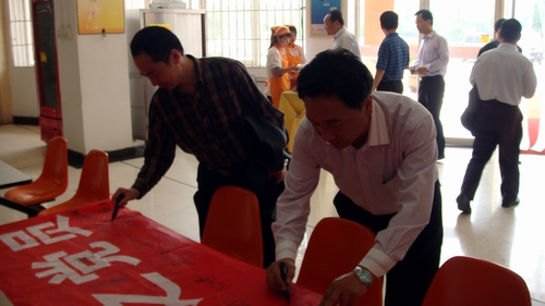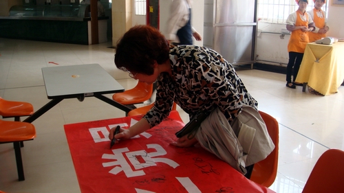 4月28日中午,“雷锋在行动”之节约粮食从我做起签名活动在教职工餐厅举行,众多同学和老师在横幅上签名。“节俭从我做起”的理念得以传达到每个人心里。