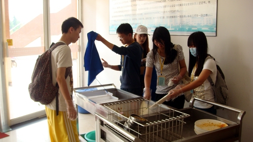 光盘行动是本次活动的主要内容之一,志愿者们协助食堂工作人员收餐盘,擦桌子,收拾杂物等。志愿者身着白色工作服,成为餐厅一道新的亮丽风景。每一个“雷锋”都微笑着工作,他们朝气蓬勃,展现出积极为他人服务的态度与甘于奉献的精神。虽然只有短短几天的参与,但他们收获颇丰,一位志愿者说:“我以后再也不会把饭弄到桌子上了,收拾这些太辛苦了,我们以前真是太不懂事了。”