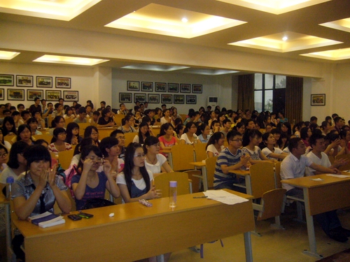 在南校区B座bj14教室举行了考研、司考经验交流会。本次交流会邀请了在2012年司考和考研中取得优异成绩且经验丰富的张润、陈雅萍、王阳和张楠等七位同学,与大家分享自己的高分经验。