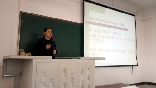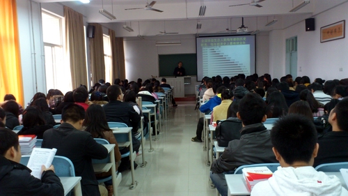中午12:30动员大会正式开始,首先,乔军伟老师大致介绍了召开此次大会的目的。之后,由李君老师为大家做讲解。李君老师非常专业的、有深度的、详尽的分别从就业形势、国家政策、作为毕业生应该具备的素质和心态、怎样找工作、面试技巧等五个大的方面入手。