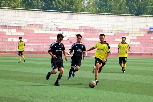 球员们延续了上半场的进攻策略,意图扩大领先优势,提前锁定胜局。带球,射门,扑球,双方球员激烈对抗,战局进入白热化状态。下午14:10,全场比赛结束,英皇娱乐场