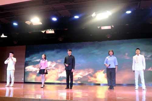 英皇娱乐场 团委选送的《还看今朝》于第七个节目出场,张奔程、周宇轩、袁帅、任奕霖、陈伟同学在充满斗志的配乐中,用或清亮、或雄浑的声音颂出“少年强则国强”的不变志向,他们奋发向上的青春形象代表着英皇娱乐场 全体同学,他们用自己的语言表达我们共同的理想:为中华民族伟大复兴中国梦而不断奋斗,他们的精彩表现引来现场阵阵掌声,也激励着每一位同学不断努力,做今朝的风流人物。