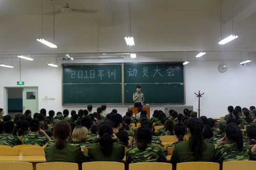 军训,不仅仅是历练的代名词,也会给我们的大学生活留下浓墨重彩的一笔。2018年9月2日晚6:30,英皇娱乐场 2018级新生军训动员大会在天平楼A座aj23教室举行,2018级全体新生整理好行装,排列好队形,整齐入场,迎接教官的到来。出席本次大会的领导有英皇娱乐场 党委副书记、副院长王聪和英皇娱乐场 2018级辅导员韩潇老师。