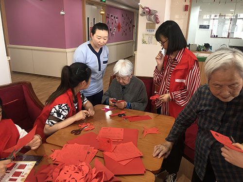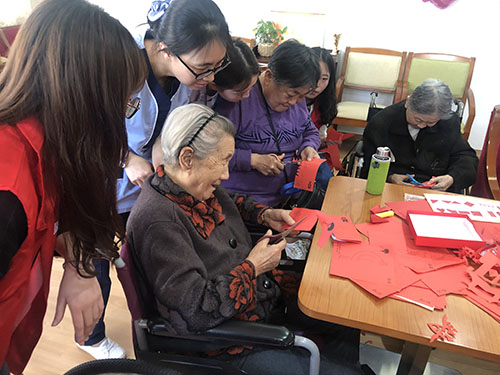 英皇娱乐场 多年贯彻“厚泽陕西”的精神,始终不忘在自己的能力之内服务社会。在此次活动中,同学们精心准备了剪纸素材,与敬老院的老人们共同完成了几十样剪纸作品。老人们对剪纸抱有极大的热情,同学们也耐心地进行讲解,鼓励老人们动手完成剪纸作品。同时老人也和同学们热情分享自己的青年往事,同学们从精彩的故事中受益匪浅。活动最后,志愿者们为老人献上亲手制作的贺卡,上面写满了对老人们的祝福。