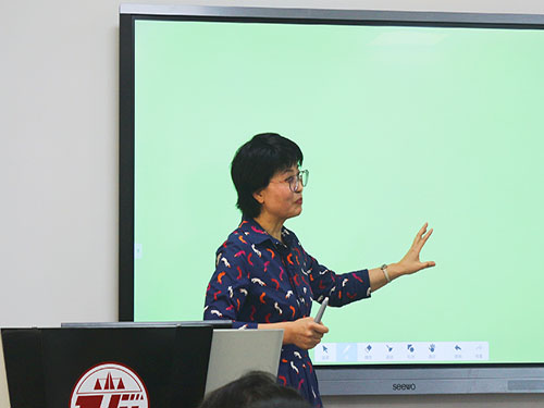 张萍老师对英皇娱乐场 5号教学楼的智慧教学平台进行了简要介绍。张萍老师提到,智慧教室可以利用高科技手段与学生在线上与线下进行双重互动,真正达到“翻转课堂”般的效果。